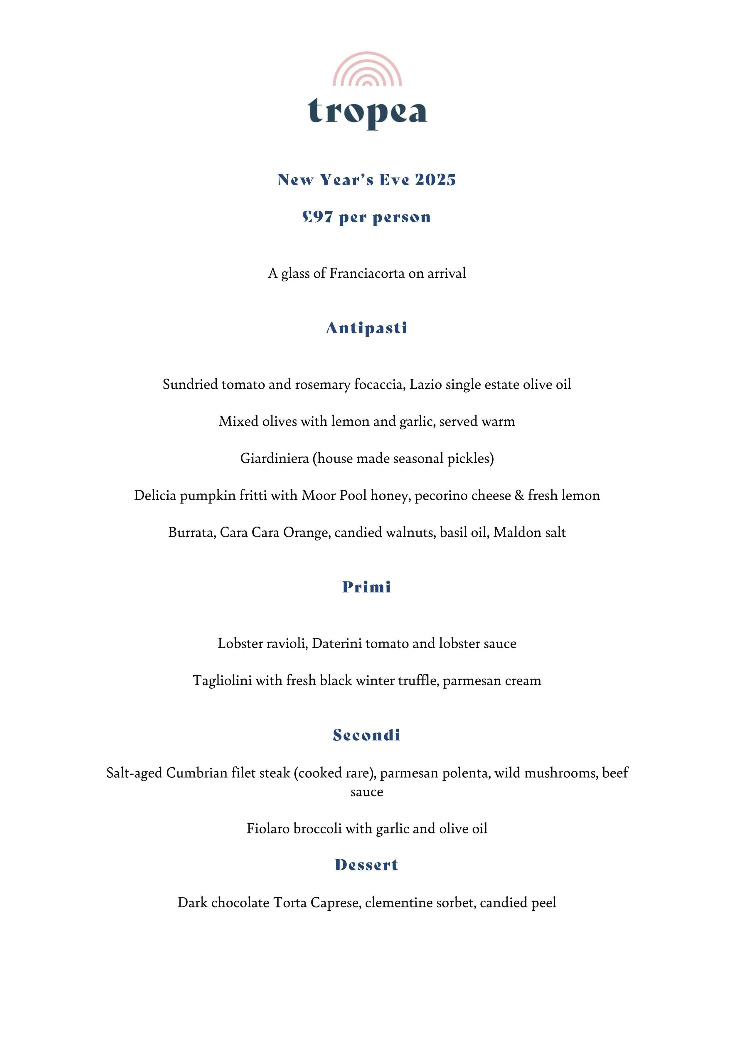 Bring in 2026 Tropea style with an exclusive menu to be shared, some serious 80s music and our usual dusting of frivolous fun.